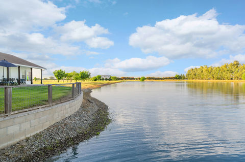 This incredible ski lake property blends privacy, recreation, and breathtaking views on 10 very private acres. Enjoy panoramic lake views from the back of the home and sweeping mountain and open country vistas from the front. Whether you're seeking a year-round residence or a seasonal retreat, this lakefront gem offers it all—swimming, waterskiing, paddleboarding, fishing, or simply relaxing by the water. A private fixed dock with a boat lift provides immediate access to your own lakefront paradise. The beautifully updated 3,007 SF home features 4 bedrooms—including two spacious primary suites—3.5 bathrooms, two living areas, and a dedicated office with built-in storage. Fresh exterior paint gives the home a clean Mediterranean aesthetic. Large windows frame the lake, and a cozy family room with a freestanding wood stove adds warmth. The kitchen boasts lake views, freshly painted cabinets, recessed lighting, stainless steel appliances, solid surface counters, and a large peninsula perfect for entertaining. The main primary suite includes French doors to the patio and lake, dual walk-in closets, and a dual-sink vanity. Down the hall are two guest bedrooms and a well-designed bath with dual vanities and a private shower area. The second primary suite—tucked away for privacy—offers its own entrance, lake access, walk-in closet, and a remodeled bath with dual sinks and a walk-in shower. Additional highlights include brand-new flooring in main areas, owned solar, two HVAC units, updated lighting and ceiling fans, and an oversized three-car garage with room for a boat. There’s also space for an RV or future additions, plus a variety of mature fruit trees. The private ski lake—shared with only three other properties—was designed with a slalom course for tournaments, offering a rare opportunity for competitive and recreational water sports alike. Conveniently located near I-5, restaurants, and shopping, and only a couple hours from the Bay Area, this rare property offers not just a home, but an exceptional lifestyle of serenity, beauty, and adventure. If you’ve ever dreamed of owning a lakefront retreat, this is it!